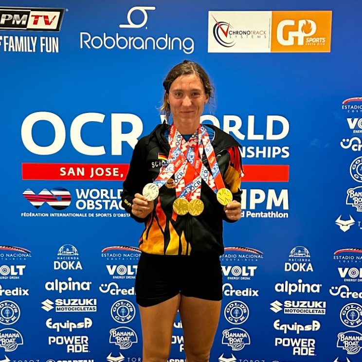 Ich bin mehrfache Welt- und Europameisterin im OCR, Deutsche Meisterin im OCR, Deutsche Vize-Meisterin im Sportklettern und Ninja Europameisterin